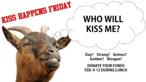The “Kiss a Goat” fundraiser has returned during lunches to target five Timber Creek teachers and coaches for a Friday afternoon lip lock. Donate any amount during lunches to the rolling “goat” cart through Feb. 13 to decide which of Read more